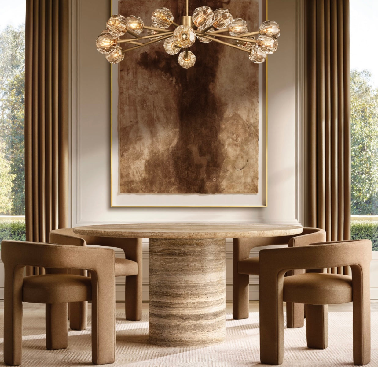 Delight in the exquisite allure of our travertine furniture, bringing a luxurious sophistication to your dining and living spaces.